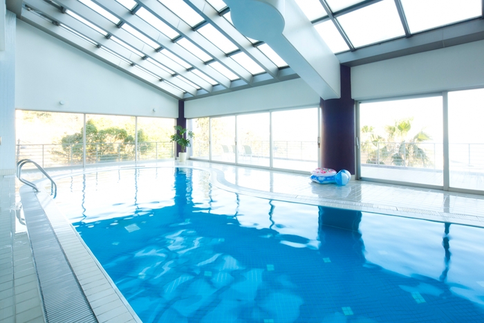 コンパクトながらも、海を見渡す温水プールを完備しています。ホテルの2階に位置しているので、お部屋で着替えてそのままプールへ直行!ということも可能です。1時間最大15名までの人数制限を設けており、小さなお子さま連れのお客さまも安心して、のびのびと楽しめます。プールを見下ろす休憩スペースは、プールには入らないけれど、水と戯れるお孫さんの姿を見たいというおじいさま、おばあさまにも好評です。
