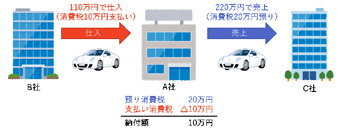 つまり、先ほどの例のA社が免税事業者だった場合、10万円得してしまうのです。