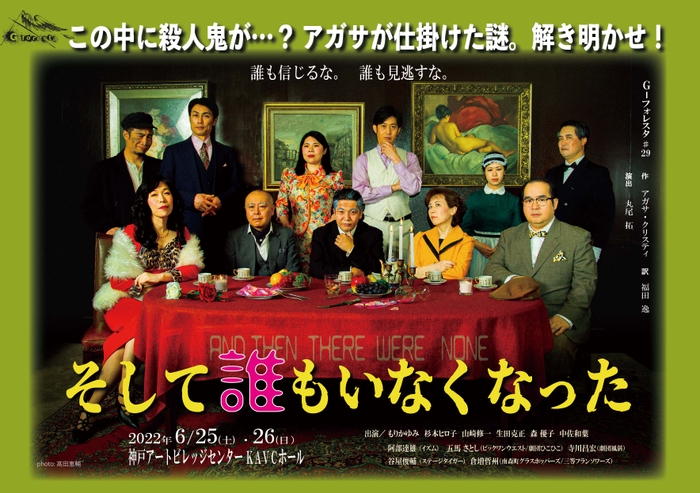G-フォレスタ『そして誰もいなくなった』が2022年6月25日(土)~6月26日(日)に神戸アートビレッジセンター(兵庫県神戸市)にて上演されます。チケットはカンフェティ(運営:ロングランプランニング株式会社、東京都新宿区、代表取締役:榑松 ⼤剛)にて発売中です。