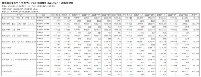 *2 今回のリリース(2022年3月度)よりエリア区分を変更。「都心6区」を「都心5区」に変更し「文京区」を「城北」エリアに入れて再計算。