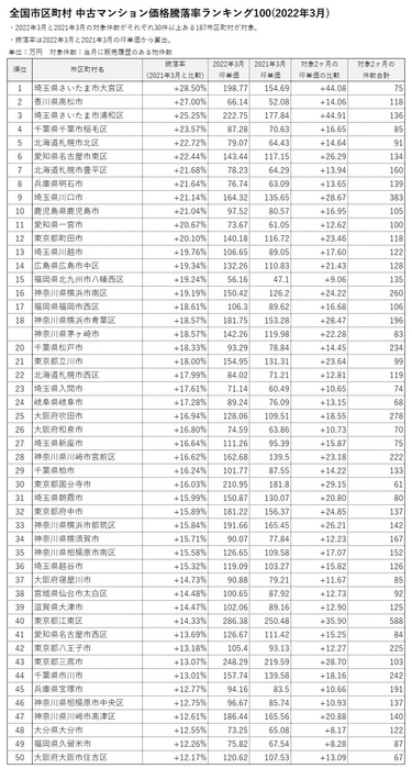■全国市区町村 中古マンション価格騰落率ランキング100(2022年3月)