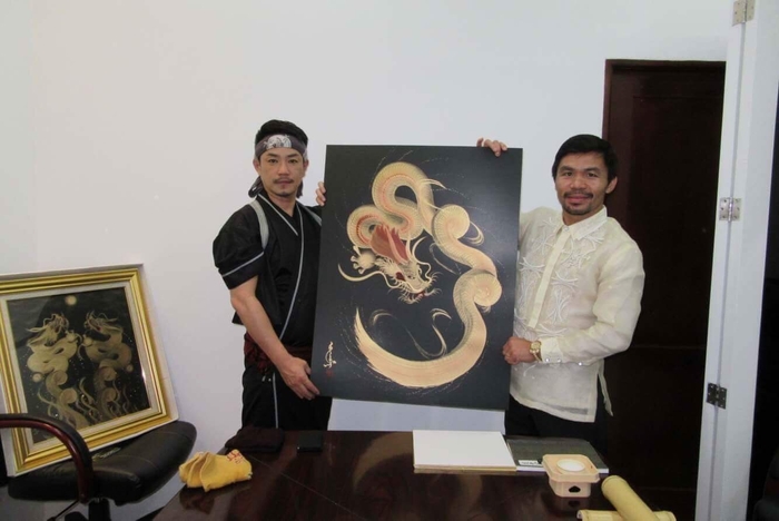 フィリピンの英雄 マニー・パッキャオ様にも京都一筆龍描画をご贈呈