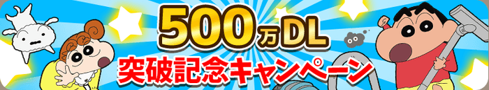この度、ご好評により累計ダウンロード数が500万件を突破したことを記念するとともに、さらなるユーザー層の拡大に向け、クレヨンしんちゃんグッズが当たるプレゼントキャンペーンを開催いたします。