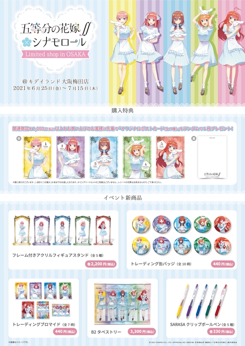 2021年6月25日(金)〜2021年7月15日(木)!五等分の花嫁∬×シナモロール Limited shop @ 大阪梅田店