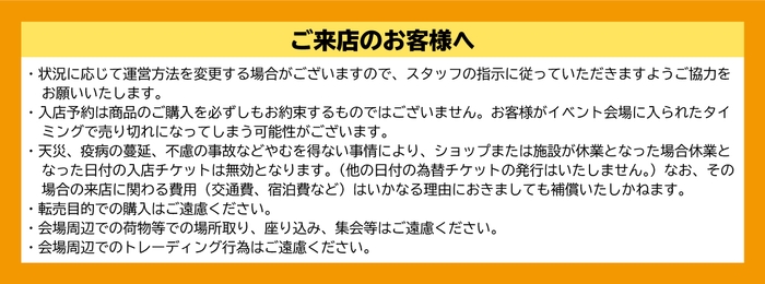 6月27日(日)以降はフリー入店となりますが、混雑状況により入店規制や入店整理券を配布させていただく可能性がございます。何卒ご理解のほどよろしくお願いいたします。