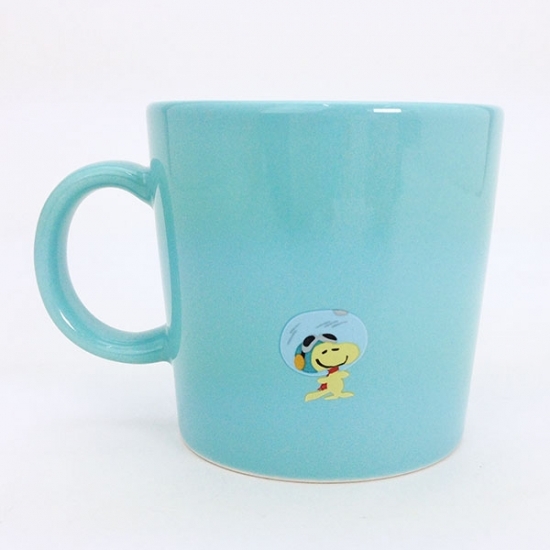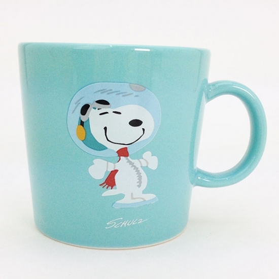 続いてのご紹介は、アストロナッツのスヌーピーマグです。爽やかなミントカラーに、嬉しそうなスヌーピー♪形もシンプルで、安定感のあるフォルムです。