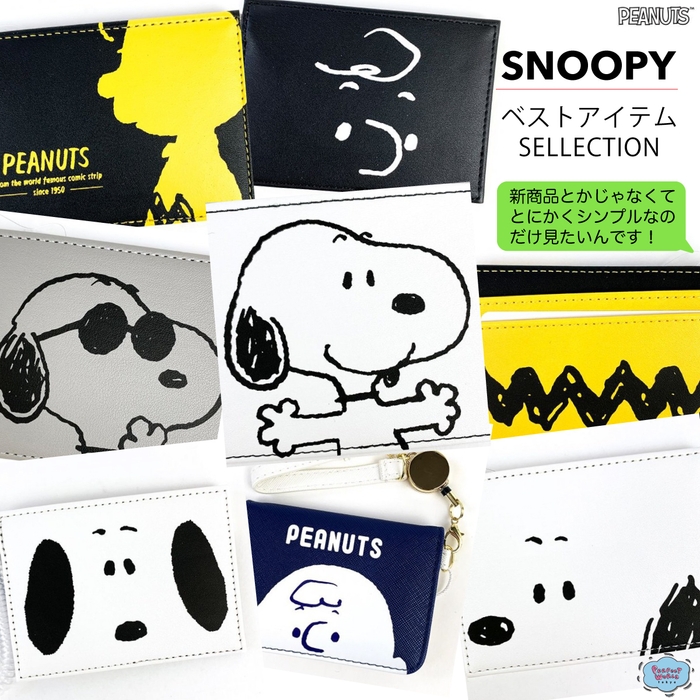 「スヌーピーで、とにかくシンプルなのを探してるの。新商品とか限定とかじゃなくて単純にスヌーピーが好きなんです。」かしこまりました。今も売っているシンプルデザインのパスケースをざっと集めてみましたよ!