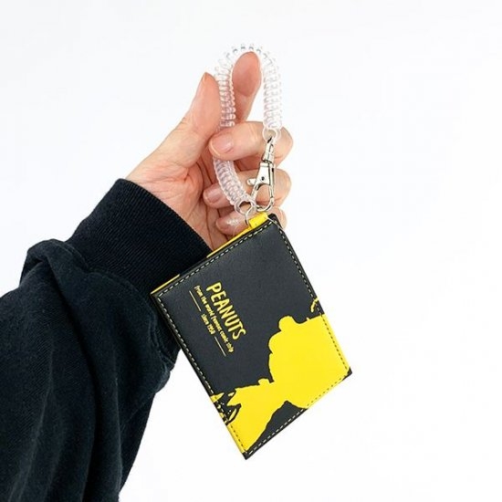こちらは、チャーリーブラウンのパスケース。黒×黄色のバイカラーで、男性にもピッタリなデザインです。