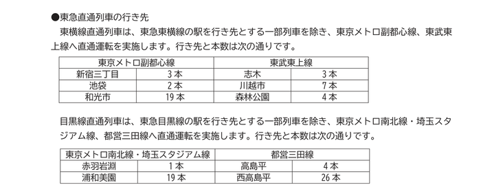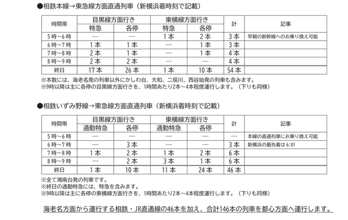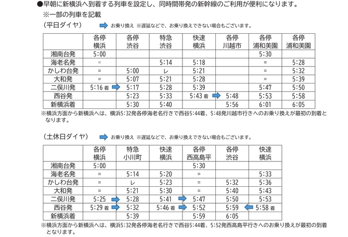 なお、土休日朝の快速横浜行きは、東横線直通列車に変更させていただきます。