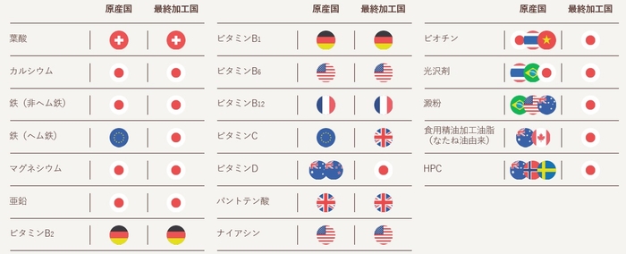 『プレミン®』は、安価な低品質原料や、不安がある国でつくられた原料を、一切使用していません。粒を固める成分を含むすべての原料を厳選し、原産国と最終加工国まで自信を持って開示しています。