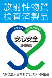 このマークは、NPO法人日本サプリメント評議会による厳しい審査を受け、放射性物質検査をはじめとする各種検査基準をクリアし、さらにパッケージの記載内容と中身に相違がないことを示します。