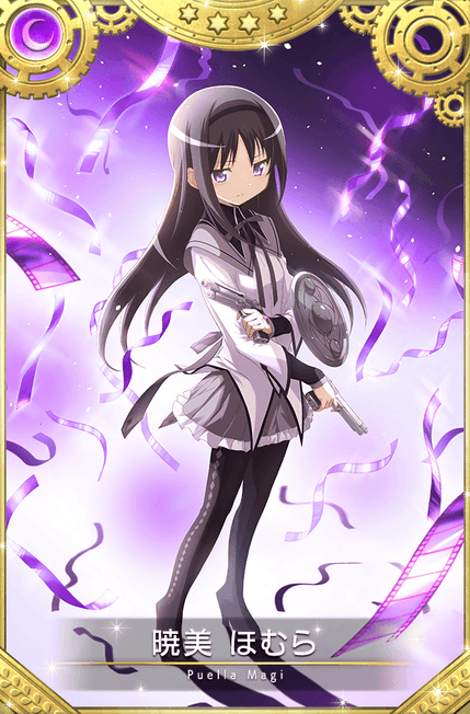 本ガチャより、魔法少女「暁美ほむら scene0 ver.(CV.斎藤千和)」とメモリア「私が守るから」「無情の入口」が期間限定で登場いたします。
