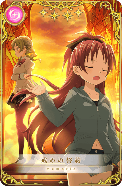 本ガチャより、魔法少女「佐倉杏子 scene0 ver.(CV.野中藍)」とメモリア「戒めの誓約」「ひそかな祈りを」が期間限定で登場いたします。