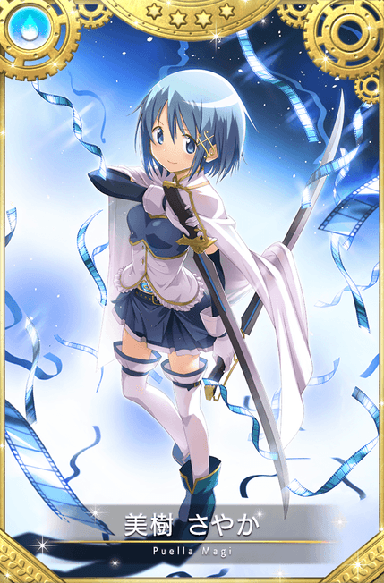 本ガチャより、魔法少女「美樹さやか scene0 ver.(CV.喜多村英梨)」とメモリア「分け合う調べ」「旋律に導かれて」が期間限定で登場いたします。