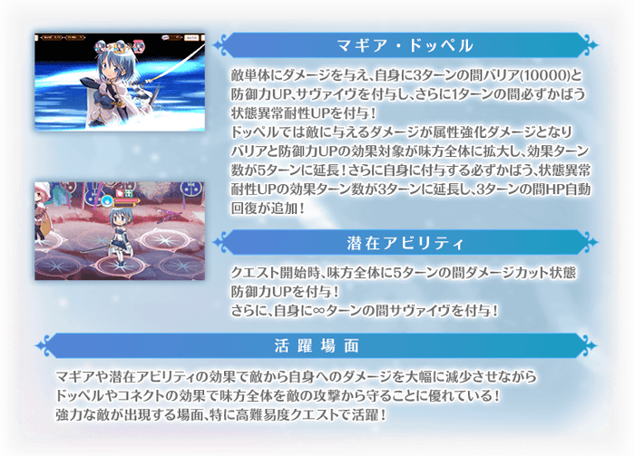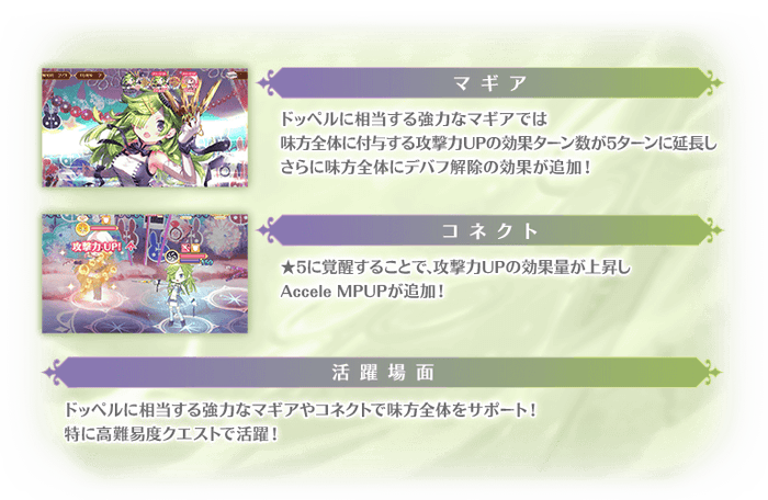 また、エピソードLv5およびマギアLv5まで育成し、魔法少女ストーリーの「まばゆの試練」をクリアすることでドッペルに相当する強力なマギアが解放されます。