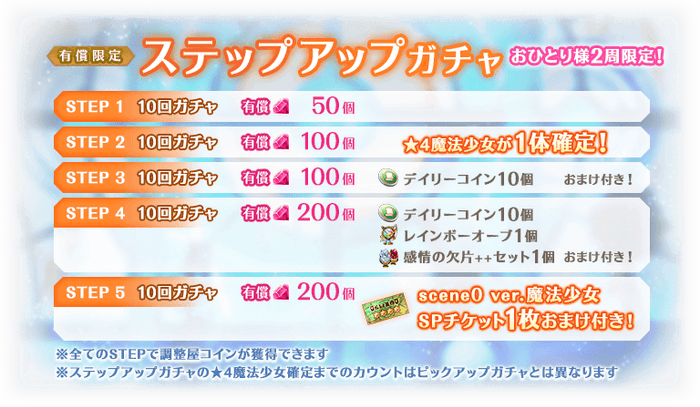 ※STEP2での★4魔法少女について、ピックアップ対象の魔法少女が確定するわけではございません。