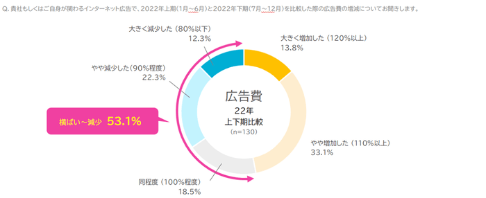 2022年下期のインターネット広告費は横ばい〜減少したとの回答が半数を超え53.1%となった。