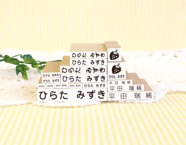 ひらがなだけではなく、漢字(もしくはローマ字)も含まれた組み合わせで、幼児〜高校生まで長く使える16本のサイズ展開。小学校で使う算数セットの「おはじき」にも押せる小さなスタンプ入りで、ひらがなは学校で学ぶ表記で作成しました。ご利用いただいた先輩ママからは“サイズが豊富で便利”と喜びのお声をいただいています。