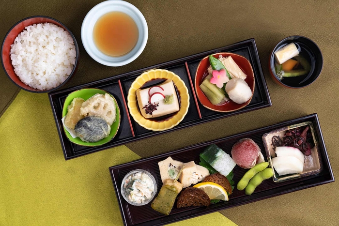 御祈願を受けた後は、OMOに戻り、精進料理のランチを楽しめます。精進料理とは、肉類と魚介類を使用せずに、穀物、豆類、野菜、海藻類などを使用した、仏様の教えを表す料理です。また、胡麻豆腐や湯葉など、縁起が良いとされる食材が多く使われています。運を呼びながら、消化の負担をかけないお食事で身体を整えます。