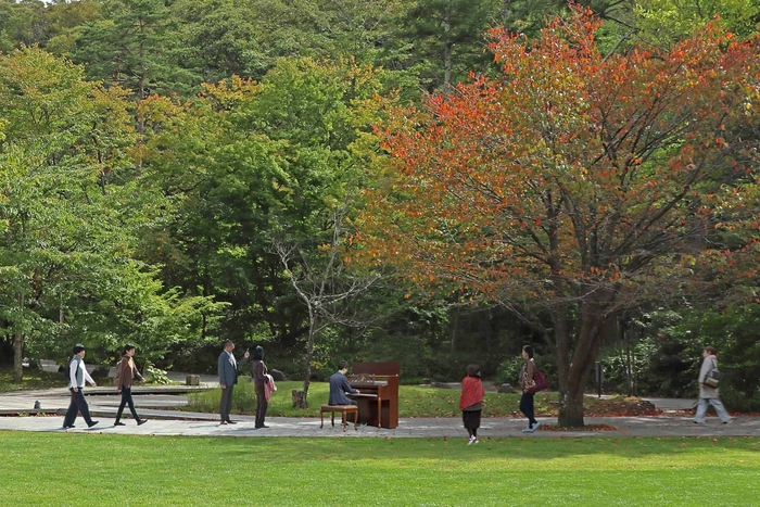 自然と文化を愛する人々が集う場所「軽井沢星野エリア(以降、星野エリア)」は、自然の中でストリートピアノを楽しむイベント「軽井沢 森ピアノ」を、2022年9月3日〜10月2日の土・日と祝日に開催します。 自然に囲まれた星野エリアの広場にピアノを設置し、誰でも自由に弾けるようにします。ピアノのそばには自然をテーマにした楽譜があり、これらの中から選んで弾くこともできます。軽井沢にゆかりのある人々によるミニライブや、聴きたい曲をリクエストできる仕掛けもあるため、ピアノを弾く人も弾かない人もゆるやかにつながることができるイベントです。