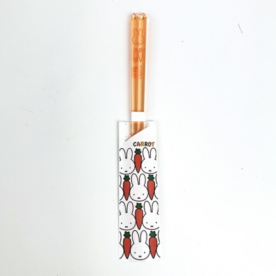 クリアなオレンジカラーのお箸で、ミッフィーとキャロットがデザインされています。