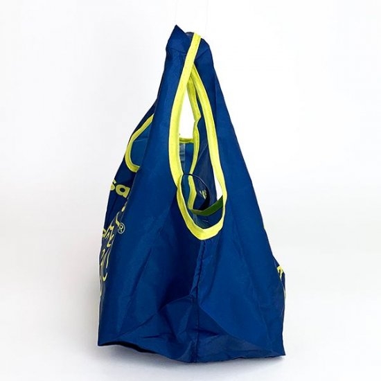 シンプルなイラストで人気のオサムグッズの、エコバッグです。ネイビーカラーにイエローのイラストや縁取りが映えていて、オシャレですよね。
