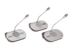 マイクとスピーカが一体になった「会議ユニット」を、出席者の前に一人一台設置することで、スピーカの音量が小さくて済み、不用意に大きな音を出すことが避けられます。
