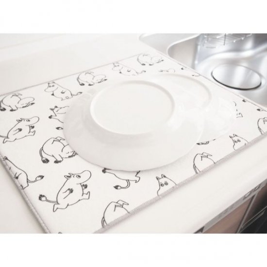 こちらは元気に動き回るムーミンたちが、楽しい気分になれる水切りマットです。吸水機能付きなので、水切りかごなどに入りきらない洗った食器を乗せて乾かせるアイテム♪水切りマットは乾かす時にも便利なループ付です。