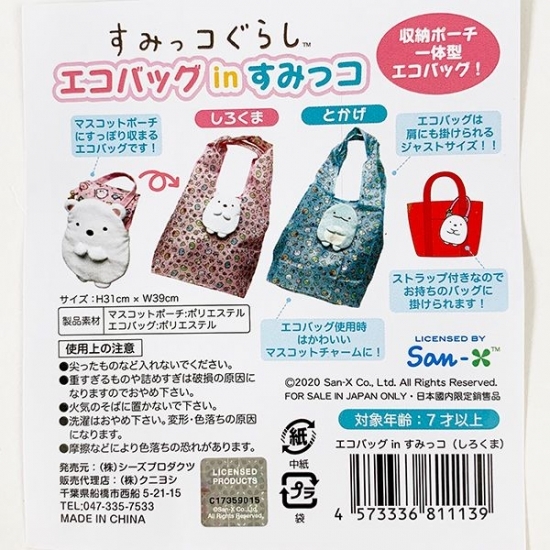 エコバッグがでてくるというあの、人気のフォーマットに、満をじしてすみっコが参戦しました。