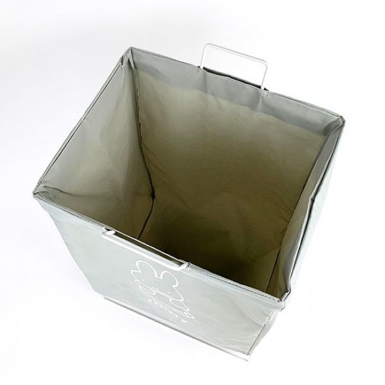 グレーと白のコントラストがおしゃれなランドリーバスケット。洗濯物はもちろん、おもちゃの収納やごみ箱としても使えます!防水加工もされているのでとても便利ですよ。