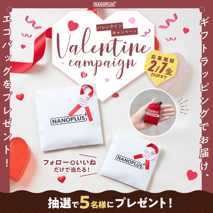 また、同期間にバレンタインシーズンにあわせてラッピングを施した手のひらサイズのエコバック「NANOPLUS」があたるInstagramキャンペーンも開催します。