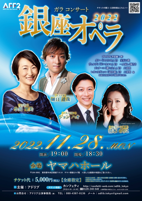 アドリブ公演事務局主催、『銀座オペラ・ガラコンサート』が2022年11月28日 (月)にヤマハホール(東京都中央区銀座7-9-14ヤマハ銀座ビル7階)にて開催されます。