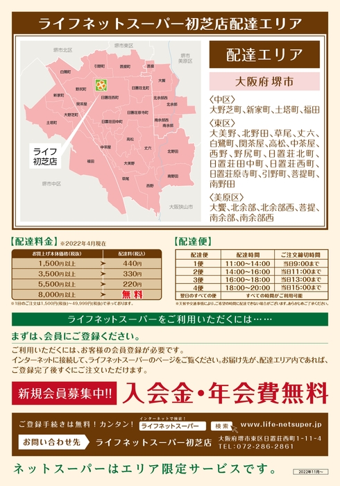 ご注文いただいた商品を店舗からご自宅へお届け「ライフネットスーパー初芝店」サービス開始【堺市内の配達エリアを拡大】