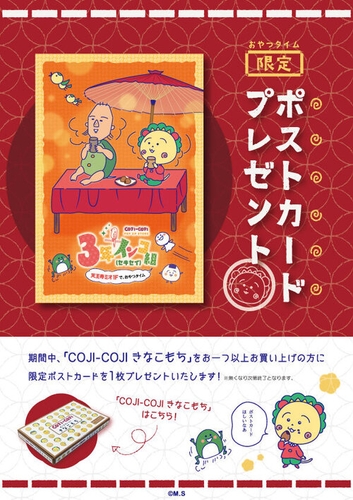 Rinto正面エントランスの食物販では、期間中、「COJI-COJIきなこもち」をお一つ以上お買い上げの方に限定ポストカードを1枚プレゼント致します。