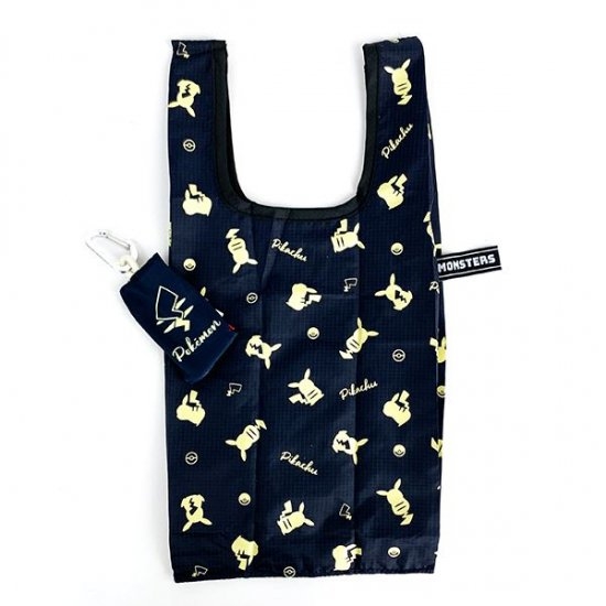 シックなブラックのエコバッグには、後ろ姿のピカチュウが散りばめられています。モンスターボールや名前も入っていて、ちょっぴりオトナなデザインです。