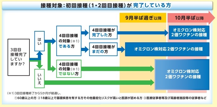 4回目接種は、60歳以上や基礎疾患がある方の接種となっていましたが、今回のオミクロン株対応ワクチンは初回接種が完了している12歳以上の方であれば誰でも接種が可能です。4回目が打ちたかったけど対象者でなく打てなかった方、3回目接種のタイミングを逃していた方などは接種を検討してみてはいかがでしょうか?