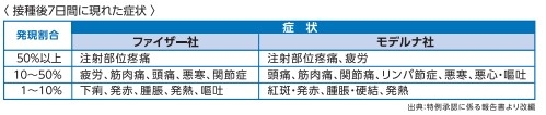 ファイザー社、モデルナ社ともに下記のような従来型ワクチンとおおむね同様の症状がみられています。