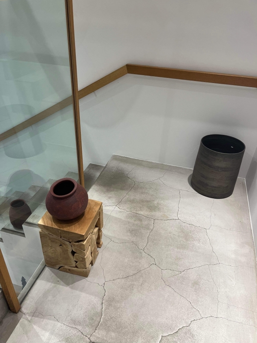 あきる野の土、多摩川の土を使った塊裂茶碗 スリット鉢サボテン&道草花器の展示がエントランスにて行われました。