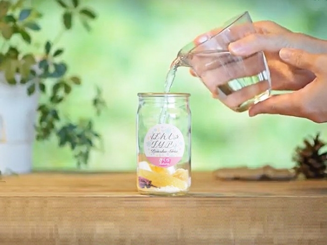 ぽんしゅグリアは、清酒カップにドライフルーツやハッカ糖などが入っており、好きな日本酒を注ぐと自分オリジナルのフルーツカクテルが作れるという商品です。
