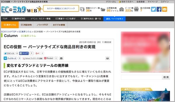 EC商品検索・レコメンドを始めとしたパーソナライズドECソリューションを開発販売する株式会社ゼロスタート(本社:東京都目黒区、代表取締役社長:山崎徳之、以下ゼロスタート)は、株式会社Ryo-MAが運営する『ECのミカタ』にて、2015年10月~12月の期間において新連載のECマーケティングコラムを開始しました。