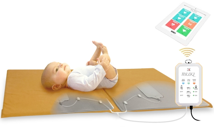 リキッド・デザインが開発した呼吸や体動を監視するバイタルセンサーを用いた「IBUKI PLUS」は、iPadで呼吸や体動をモニタリングしながら乳幼児の睡眠を見守ります。