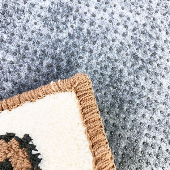 マットで大切な裏面。滑り止めがしっかりついていて、品質は確かです。毛足も素敵ですね。
