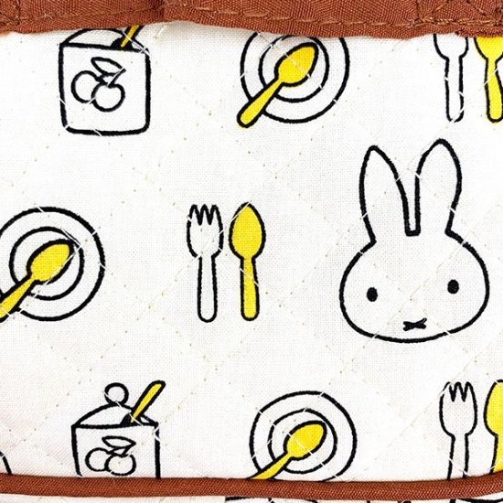 全面にかわいいミッフィーのお顔や、カトラリーなどのデザインが描かれている生地です。