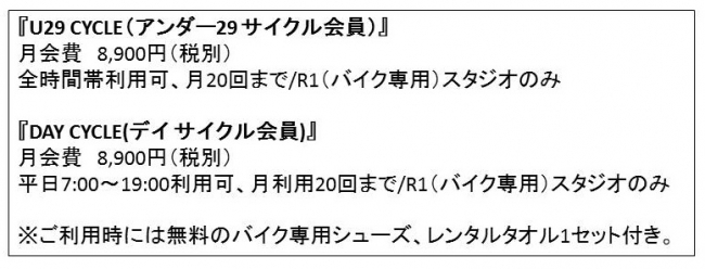 この度、オープン以来お声の多かった「このプログラムをもっと気軽に受けたい」という若者世代の熱いご要望にお応えし、バイクプログラムに特化した『U29 CYCLE(アンダー29 サイクル会員)』を導入いたします。