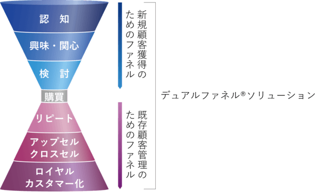 ※1)デュアルファネル®ソリューション:企業が抱える「新規顧客の獲得」「既存顧客の育成」という2つの課題への対応を一本化し、連携してマーケティングROIの向上を実現するソリューション