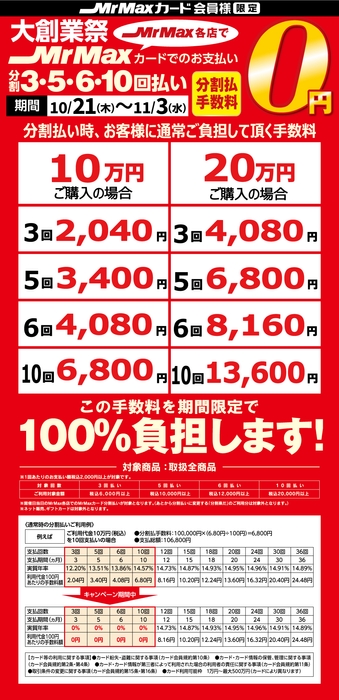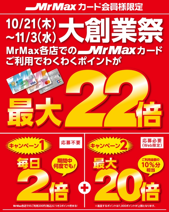 大創業祭期間中は、MrMaxカードでのお買い物が更にお得に!