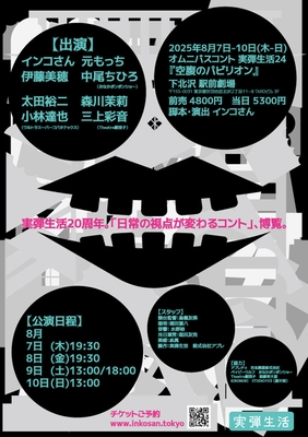 実弾生活×アプレッシブ オムニバスコント 実弾生活24『空腹のパビリオン』が2025年8月7日 (木) 〜 2025年8月10日 (日)に駅前劇場(東京都 世田谷区 北沢 2-11-8)にて開催されます。