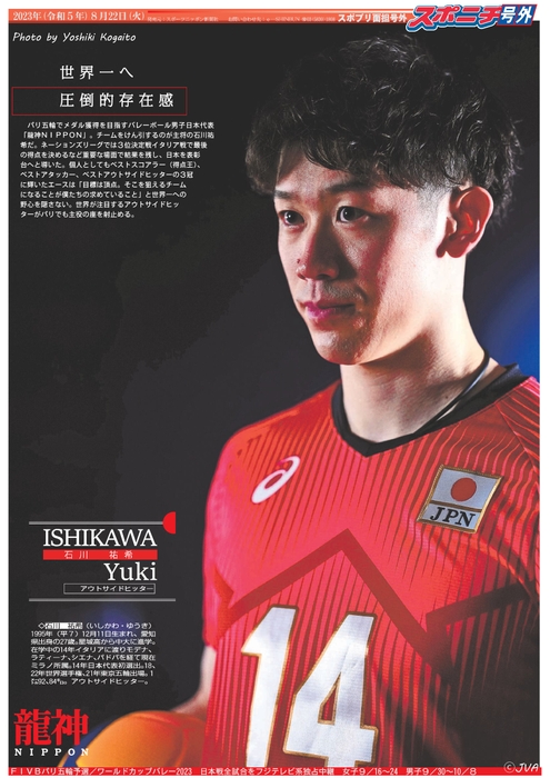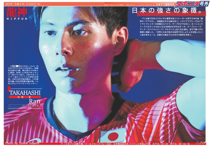 本紙・小海途良幹カメラマンが撮影した男子「龍神NIPPON」石川祐希、髙橋藍、西田有志らは新バージョンを追加!女子「火の鳥NIPPON」は横田真未、荒木彩花、松井珠己、宮部藍梨、西村弥菜美、長岡望悠、渡辺彩、林琴奈らが新たに登場します!練習中の表情など、普段は見られない貴重なショットをたっぷりお届けします。