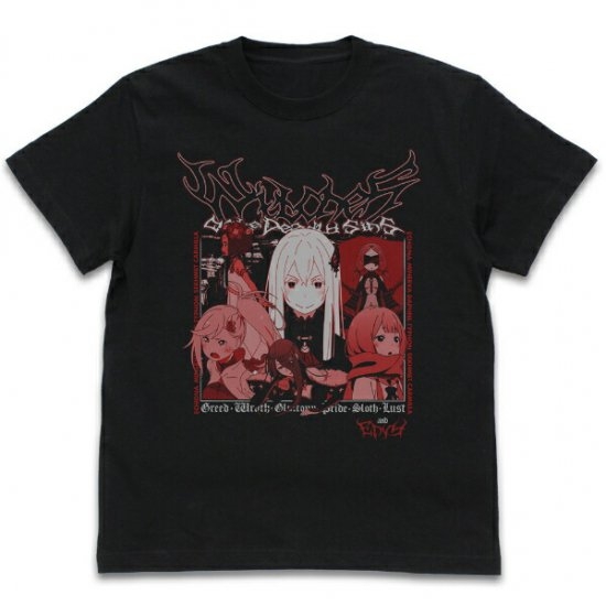 まずは1枚目。大罪の魔女6人が前面にデザインされた、カッコよさが際立つTシャツです。ブラックの色合いは、クールに着こなしたい方にピッタリ!