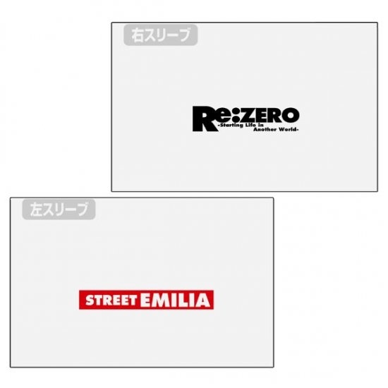 大きく描かれているのは、ストリートファッションに身を包んだエミリア。全体のデザインもオシャレでかわいいですよね♪こちらも、S/M/L/XLと4つのサイズを展開しています。